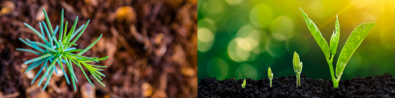 Tiny seedlings grow and transform into trees with a great quantity of matter.