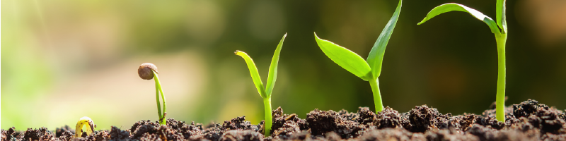 Tiny seedlings grow and transform into trees with a great quantity of matter.