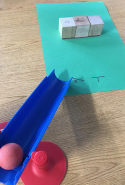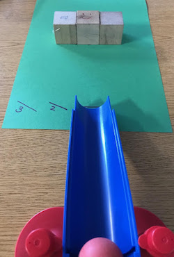 In this mini-wall ball exploration, a ball is rolled down a ramp to collect data about the effect of a ball colliding with a wall. (SEP) The ramp is used to keep the force of the ball consistent during the investigation. Data will be collected and recorded to show how changing the ramp’s angle affects the collision of the ball with the wall. This data will be used to collaboratively discuss the cause and effect phenomena of how the changes with the ramp cause predictable patterns of collisions with the wall. (CCC)