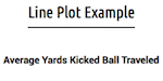 If students have little experience with graphing, it is important to take the time here to discuss different types of graphs (e.g., bar, line, pie, line plots) and help students understand that this data is best displayed as a line plot because it is comparing categories (yards the ball traveled and the number of people who kicked that far). See 3.3.R1: Line Plot Example. Model setting up the graph with a title and labeling the axis, etc. For this graph, the horizontal axis (the x-axis) is labeled with the number of yards the ball traveled and the vertical axis (the y-axis) is the number of people who kicked at that distance.