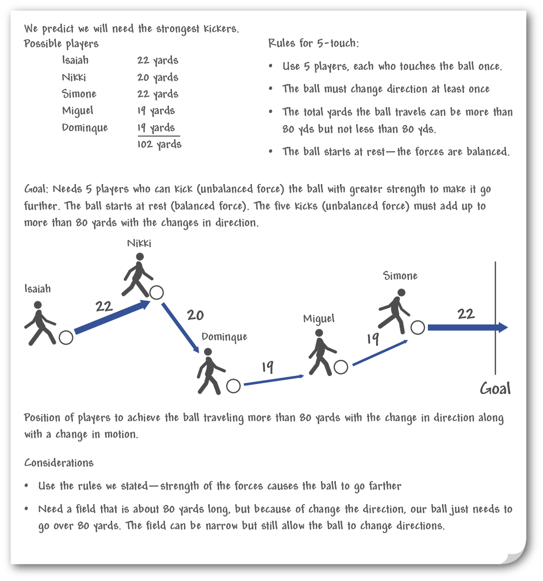 Communicate information about how the cause and effect of the strength of forces can be predicted and used to design a new soccer game.
